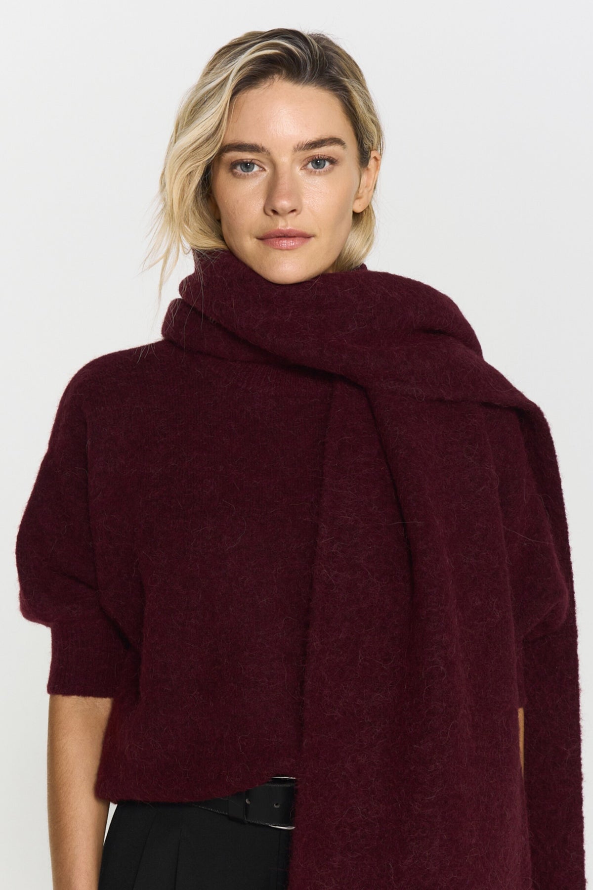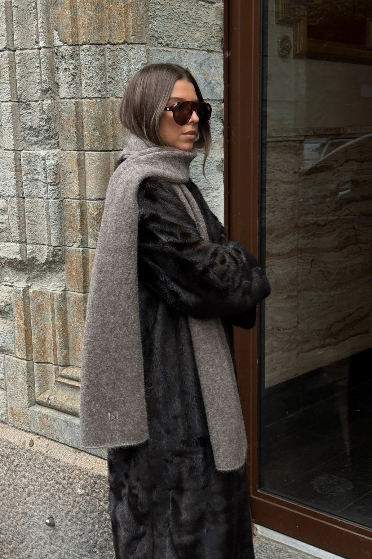 Our cozy knitted Everlee shawl features a embroidered logotype. Perfect for staying warm and stylish during colder months, this shawl is a must-have accessory