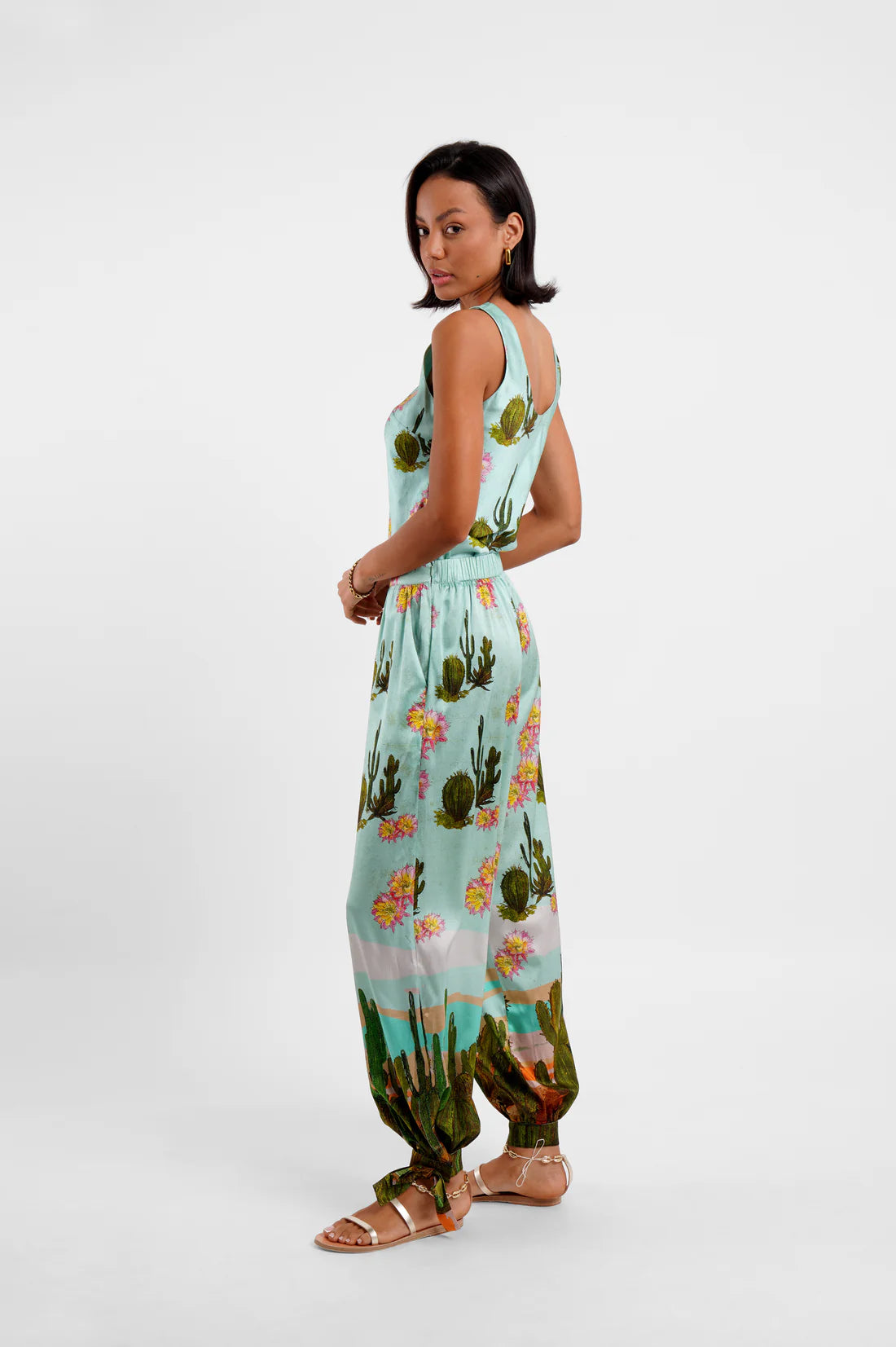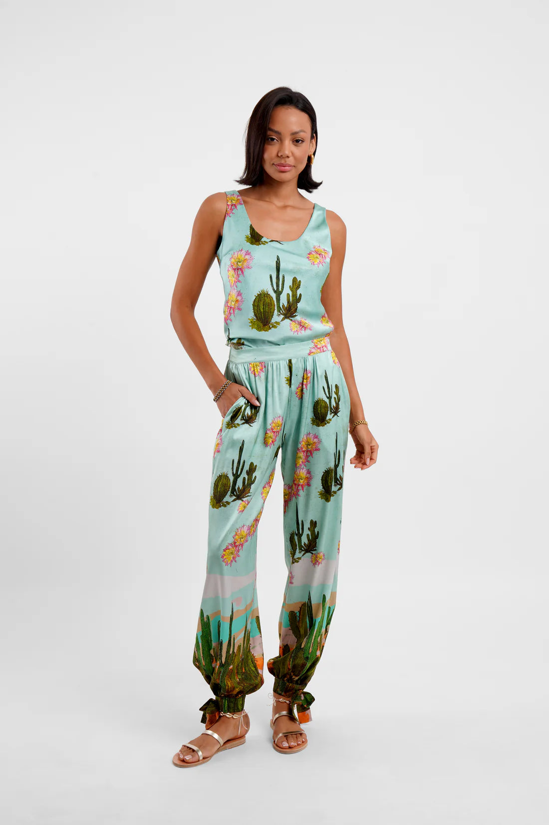 Our hand-illustrated cactus and desert bloom print runs throughout, with the landscape artwork anchoring the hem for visual impact. The result is effortless but directional.