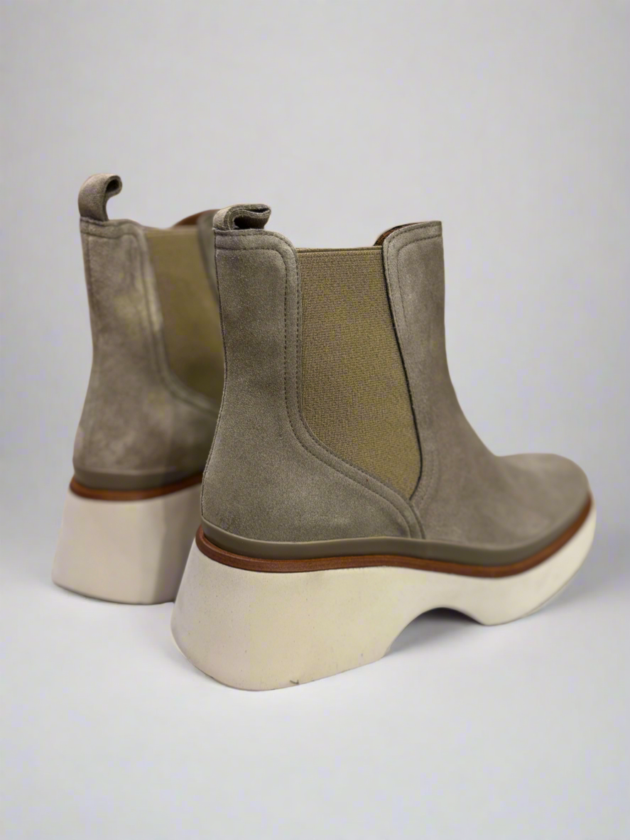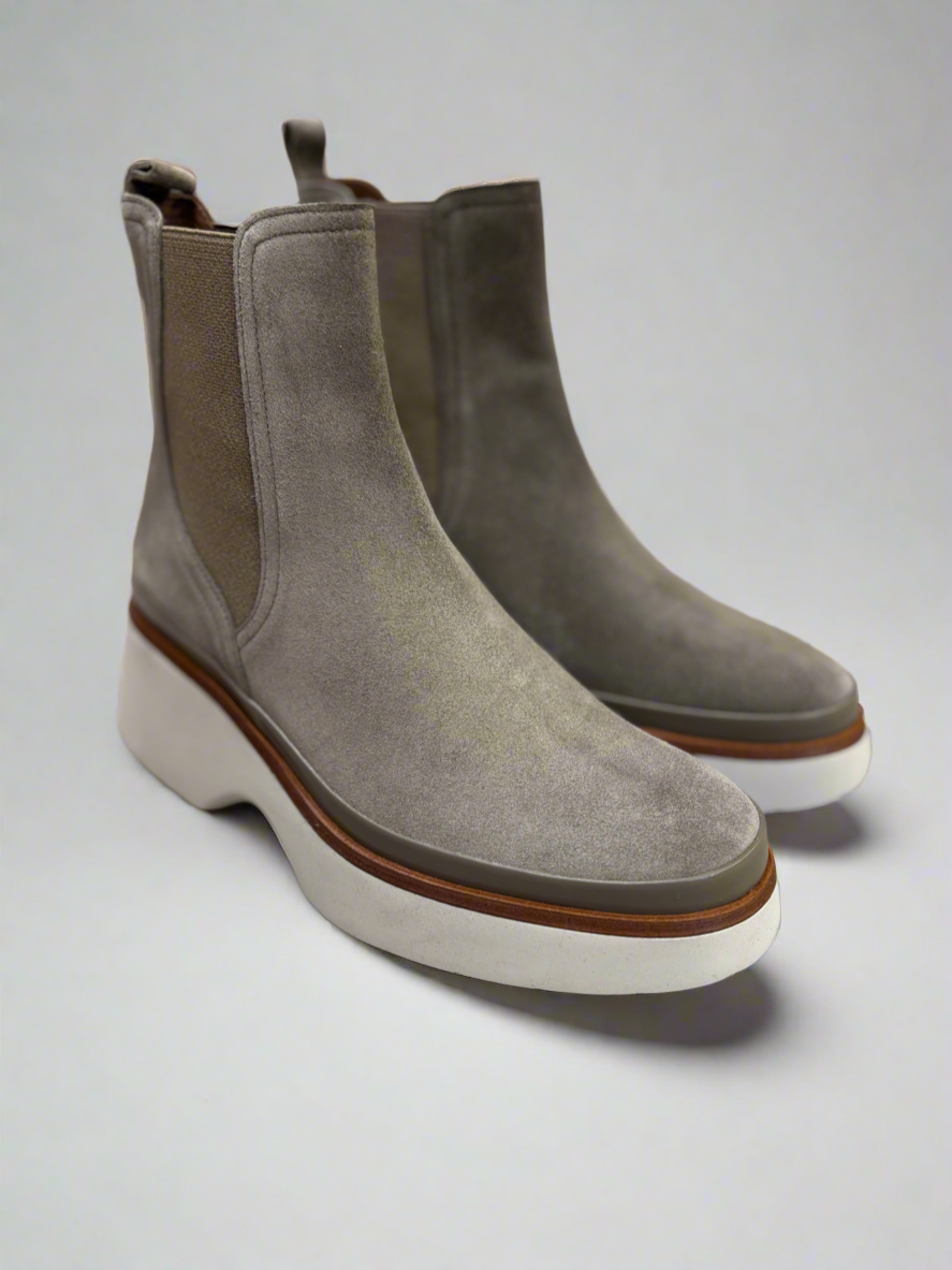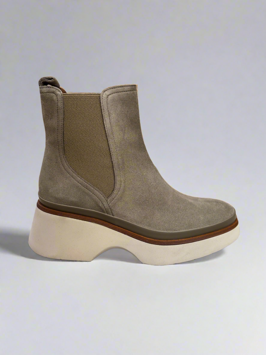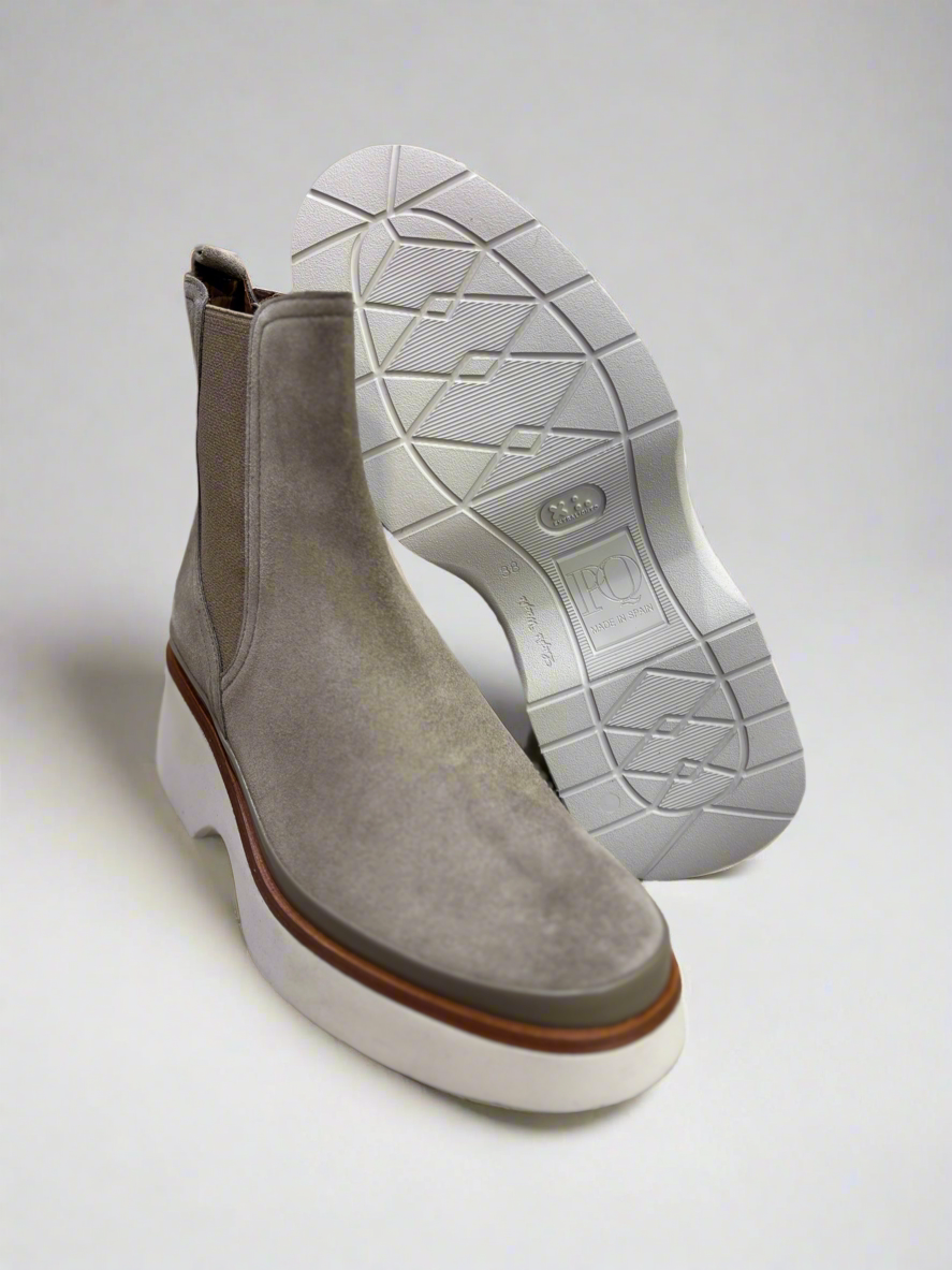The Pons Quintana ‘Raquel’ ankle boot combines expert craftsmanship with casual sophistication. Featuring a neutral suede upper, this wedge boot offers both comfort and subtle style, making it versatile for everyday wear. Its wedge heel provides elevated support without sacrificing stability, ideal for those seeking a refined yet practical footwear option. The ‘Raquel’ balances modern design with timeless appeal.