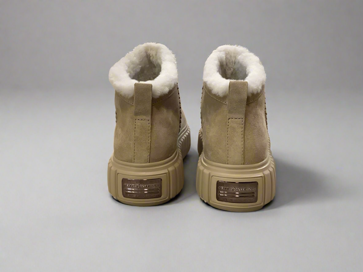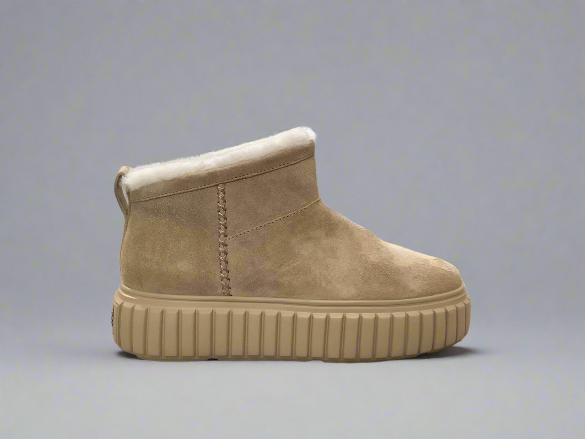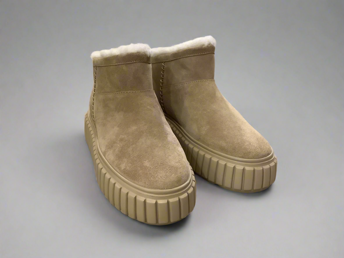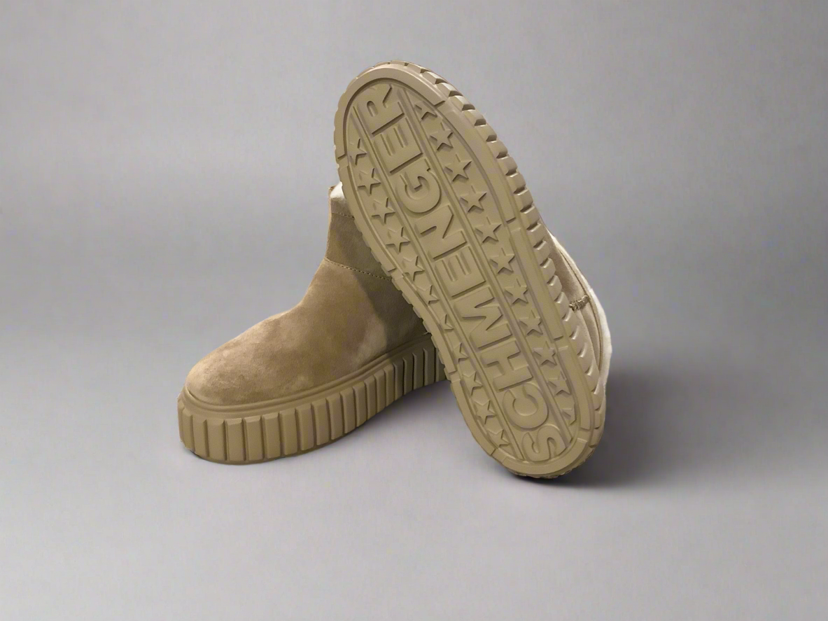 Explore the world in style and comfort with the Kennel & Schmenger 'Uddle' Boot. Crafted from luxurious camel suede and lined with soft sheepskin, these ankle boots are perfect for any adventure. The chunky sole adds durability and the ultimate fashion statement.