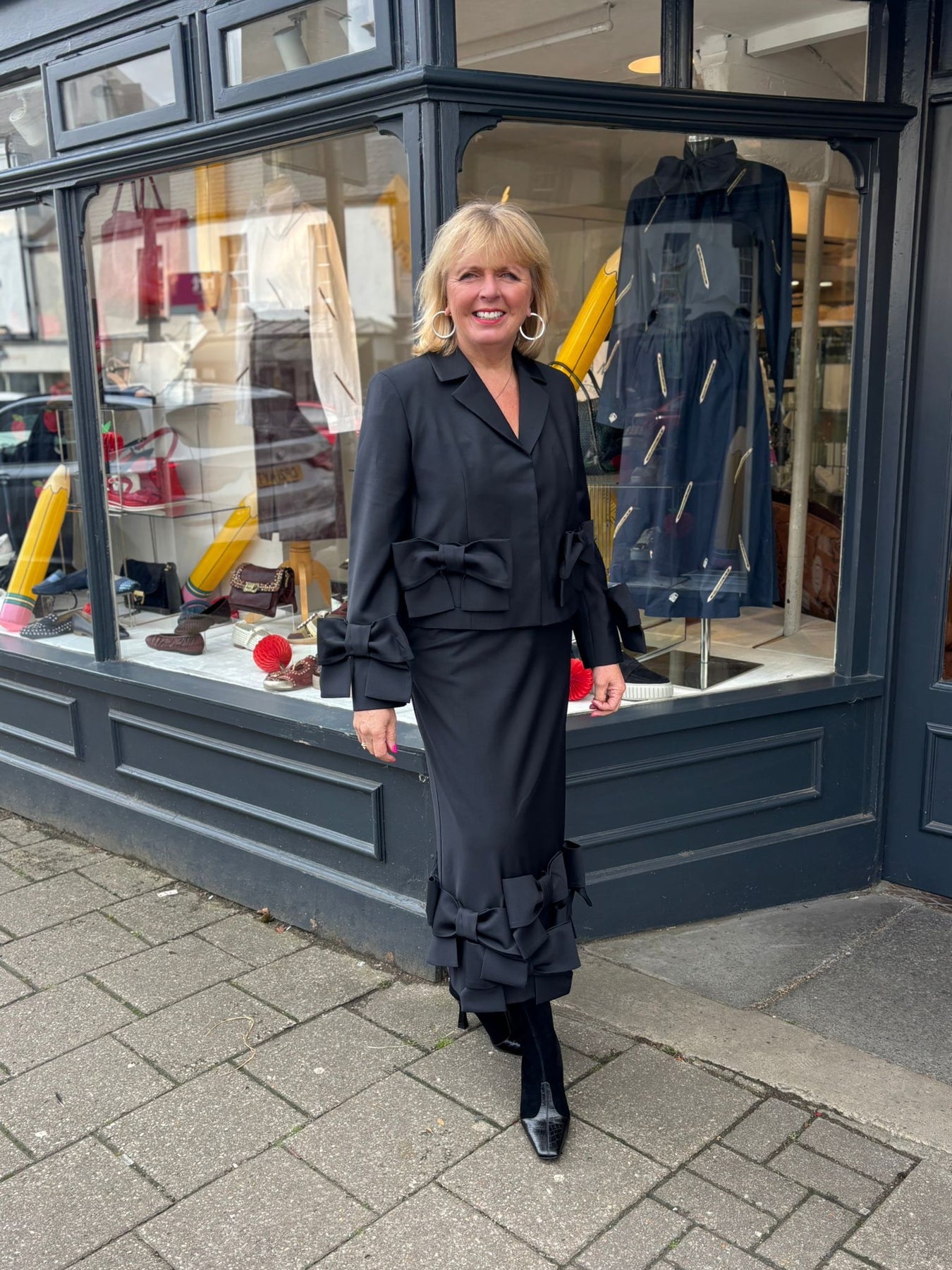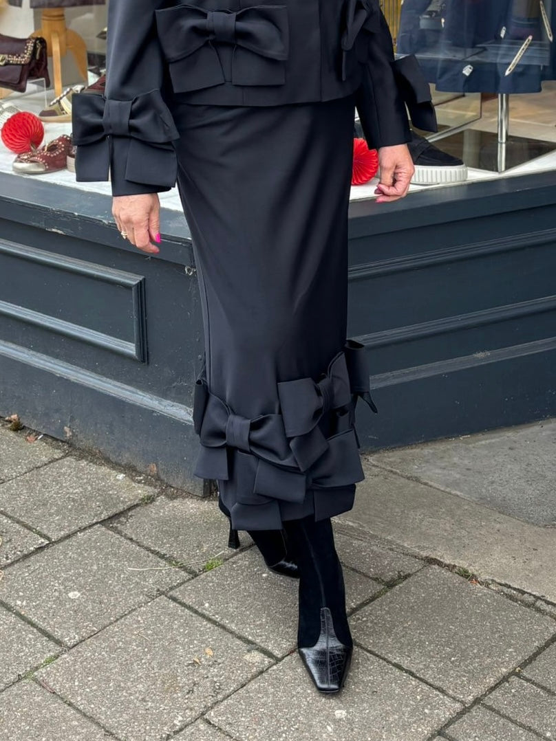 Elevate your wardrobe with the MEIMEIJ 'Gong' Skirt, a sleek black pencil maxi skirt featuring an elegant bow detail. Designed to flatter your silhouette, this sophisticated piece combines timeless tailoring with a unique feminine touch, perfect for both professional settings and refined evening occasions. The maxi length adds a graceful flow, while the bow detail provides subtle charm, making it a versatile staple for any polished ensemble.