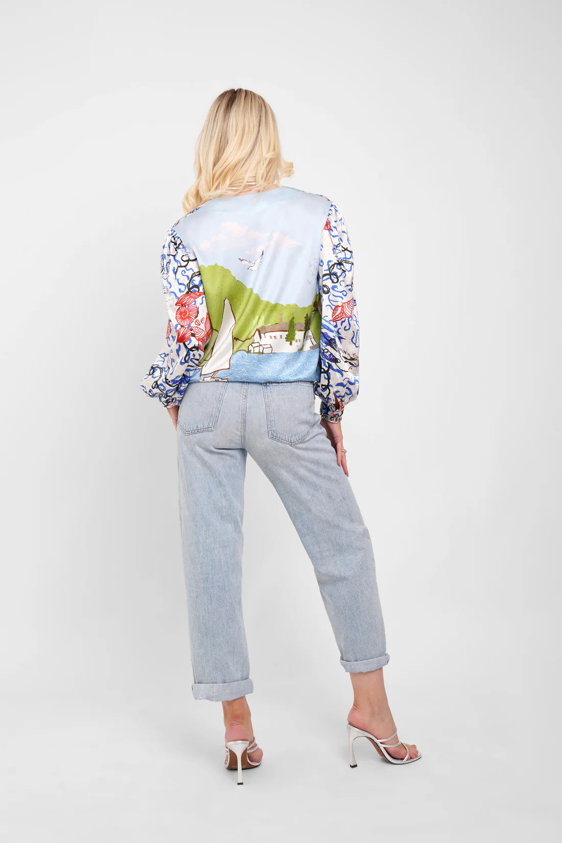 Crafted from real silk, this blouse is all about fluidity in fabric and in styling. An adjustable tie at the hem lets you play with shape: pull it in for a softly ruched finish, or leave it loose for easy elegance. However you wear it, it brings a splash of sunshine and a sense of escape to your wardrobe.