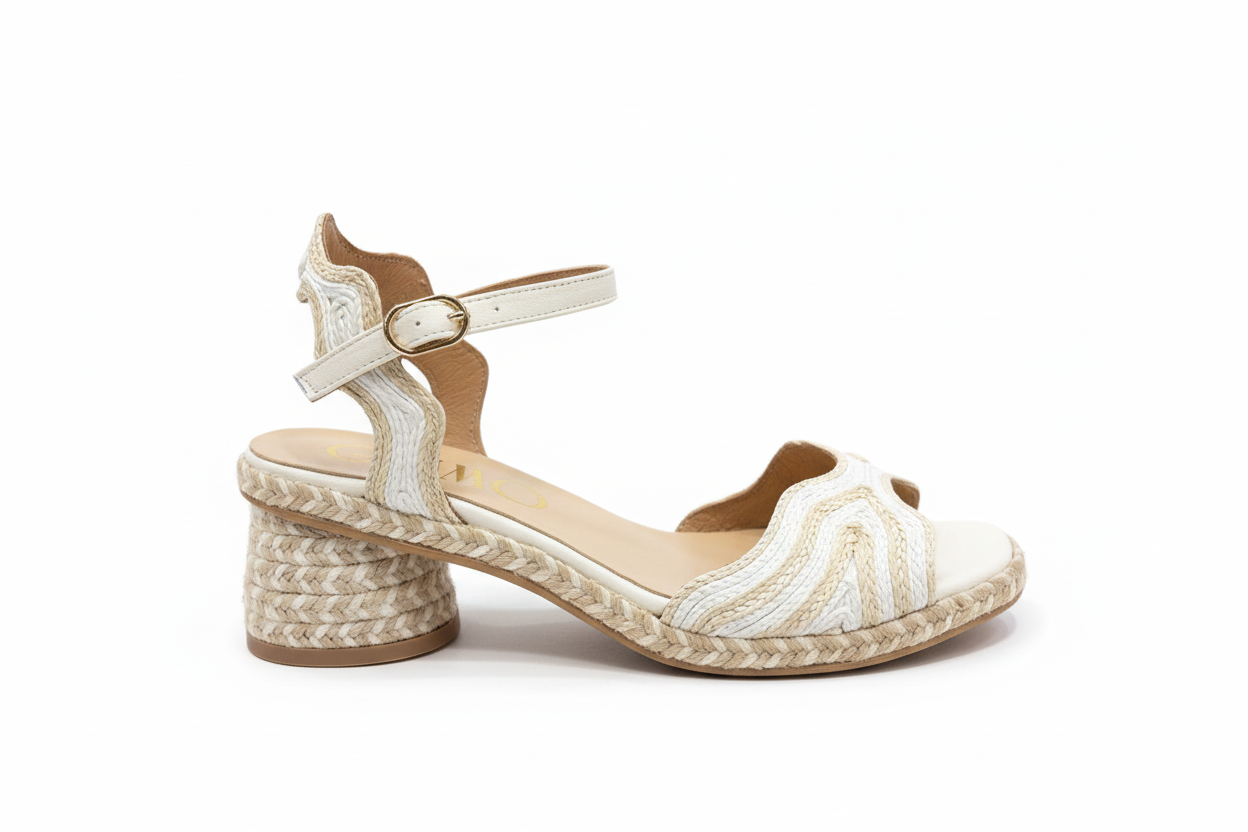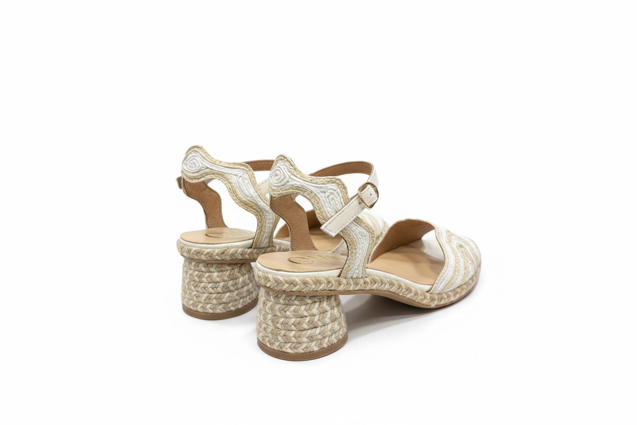 The Gaimo ‘Dane’ Sandal features a neutral two-tone braided design, enhancing versatility for various outfits. Its mid-circular heel provides stability, while the rubber sole ensures durability and traction. The buckle fastening offers a customizable fit, enhancing comfort during prolonged wear.