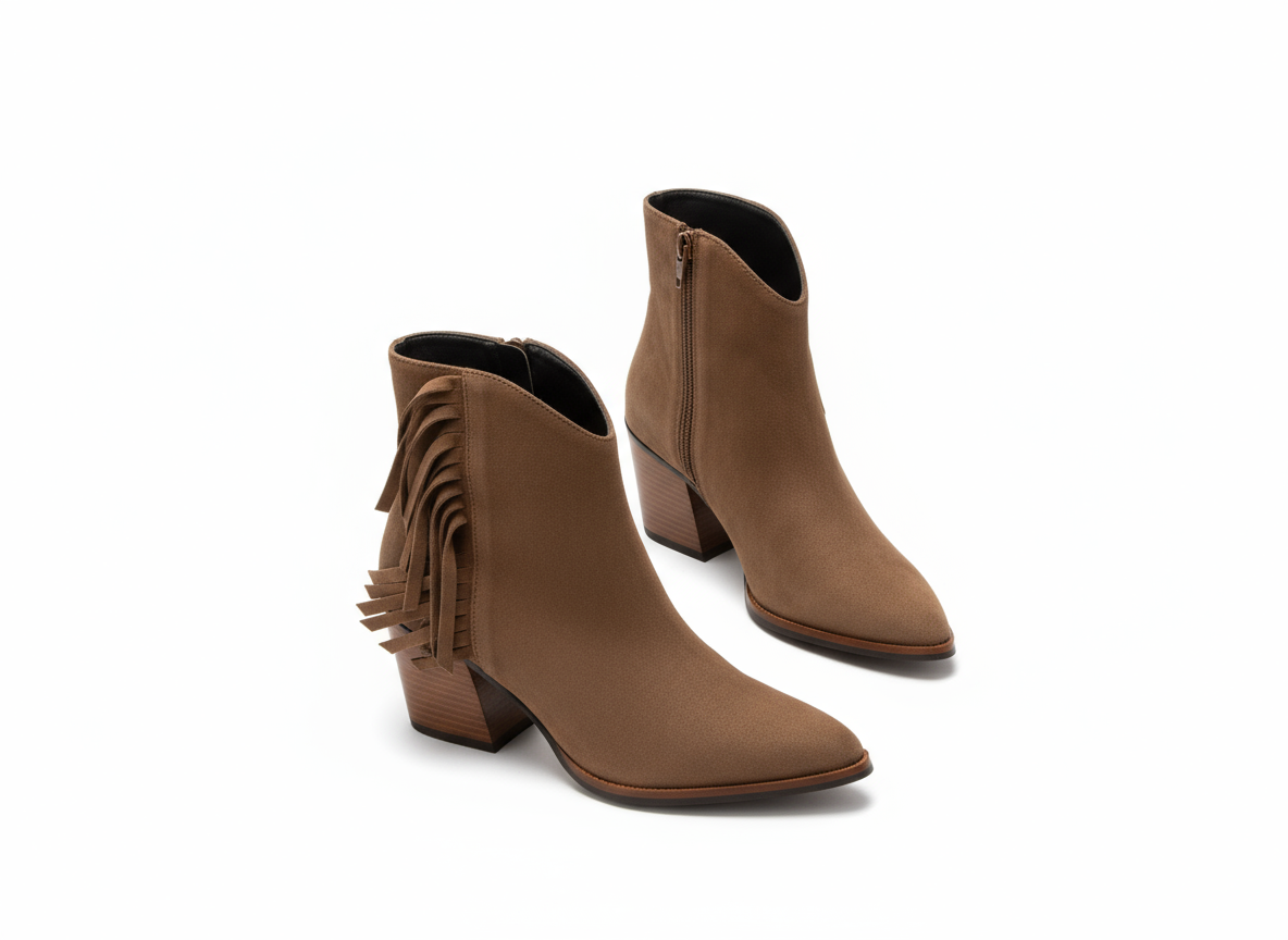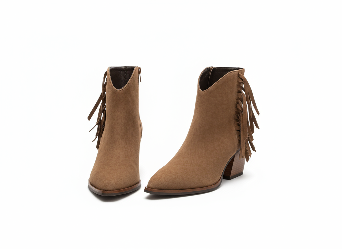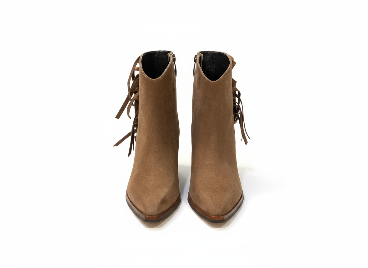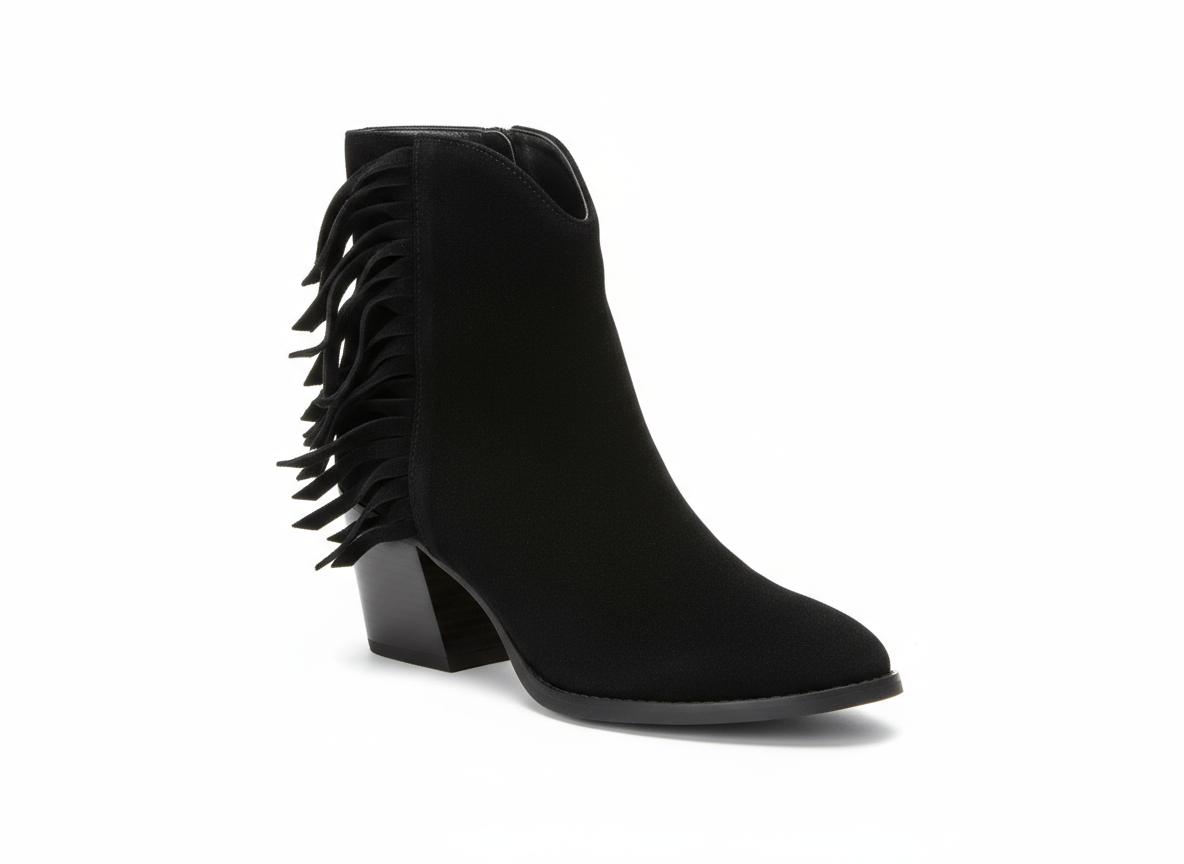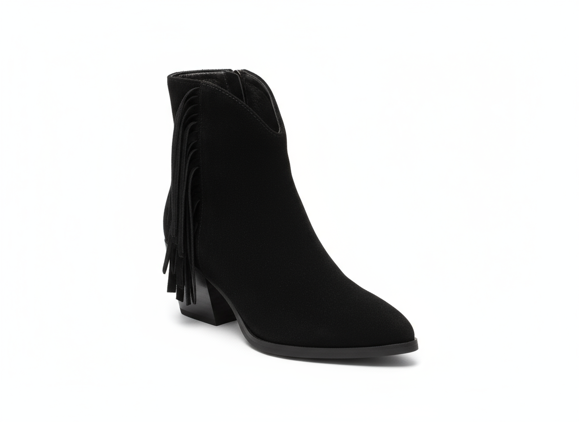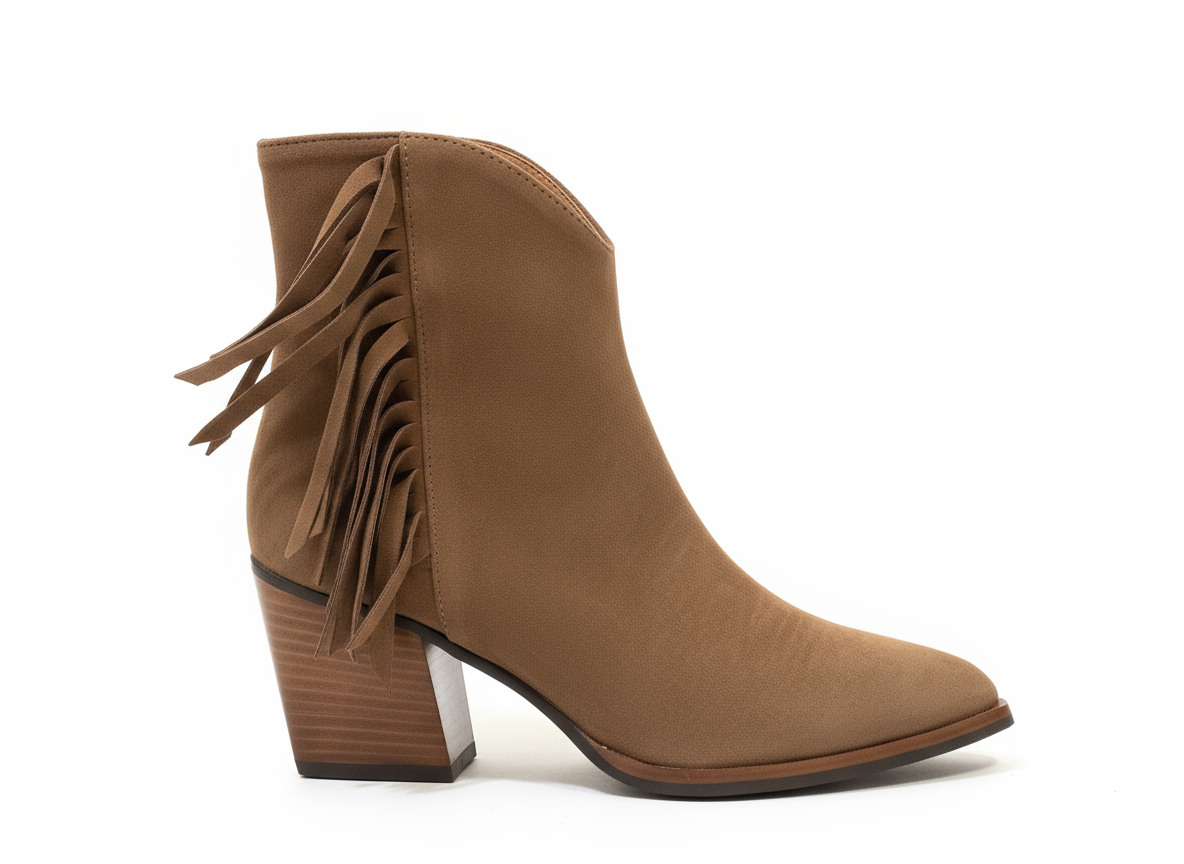 Step out in style with the Donna Lei ‘Fringe’ Ankle Boot. This boot features a high heel for added height and a touch of glamour. With a trendy cowboy style and soft suede material, it's the perfect combination of fashion and comfort. The fringe detail adds a playful touch to any outfit.