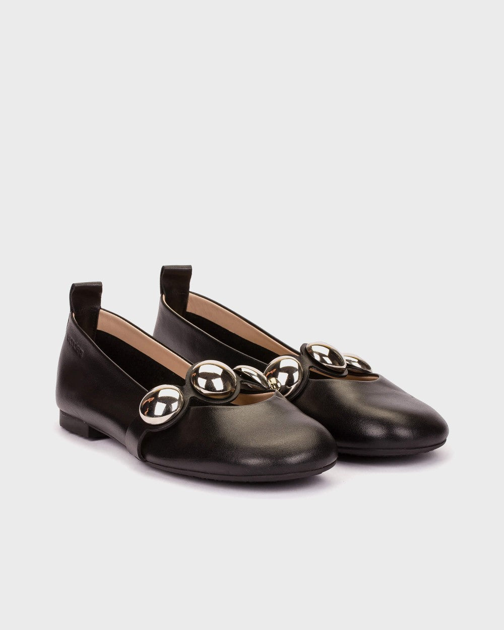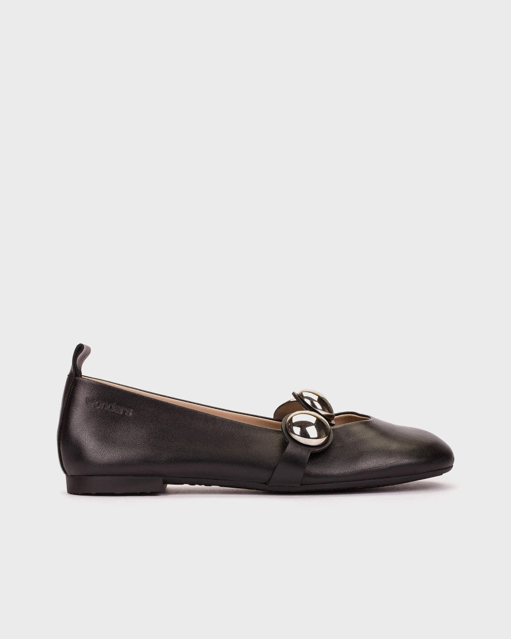 LULU ballet flats crafted from smooth black leather. The clean silhouette and rounded toe maintain a balanced design, while the jewel-effect metallic detail on the vamp introduces a sophisticated contrast that adds light and personality to the model. The MemoryGel insole adapts perfectly to the foot, providing comfort with every step. Get ready to feel the sensation. Wonders is committed to responsible manufacturing certified by LEATHERWORKINGGROUP.