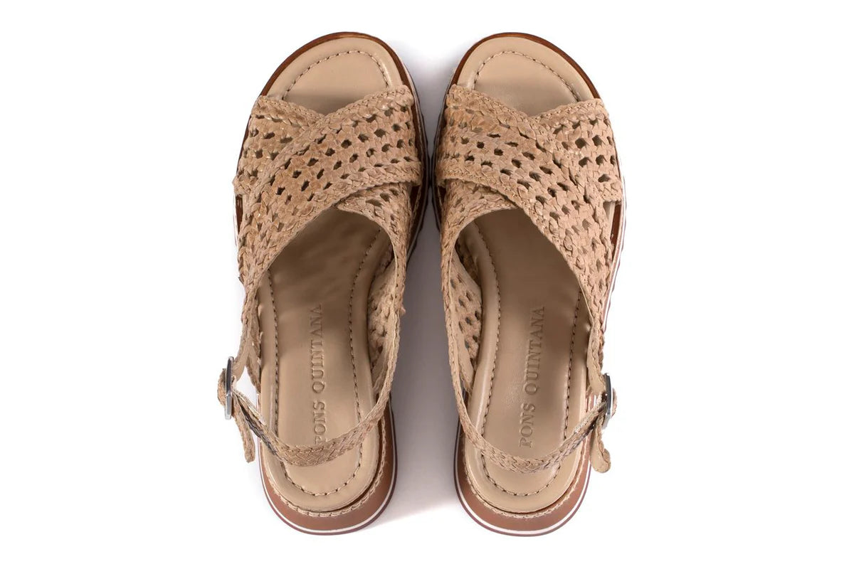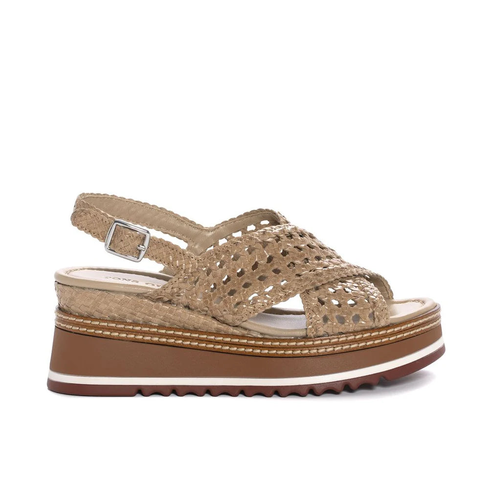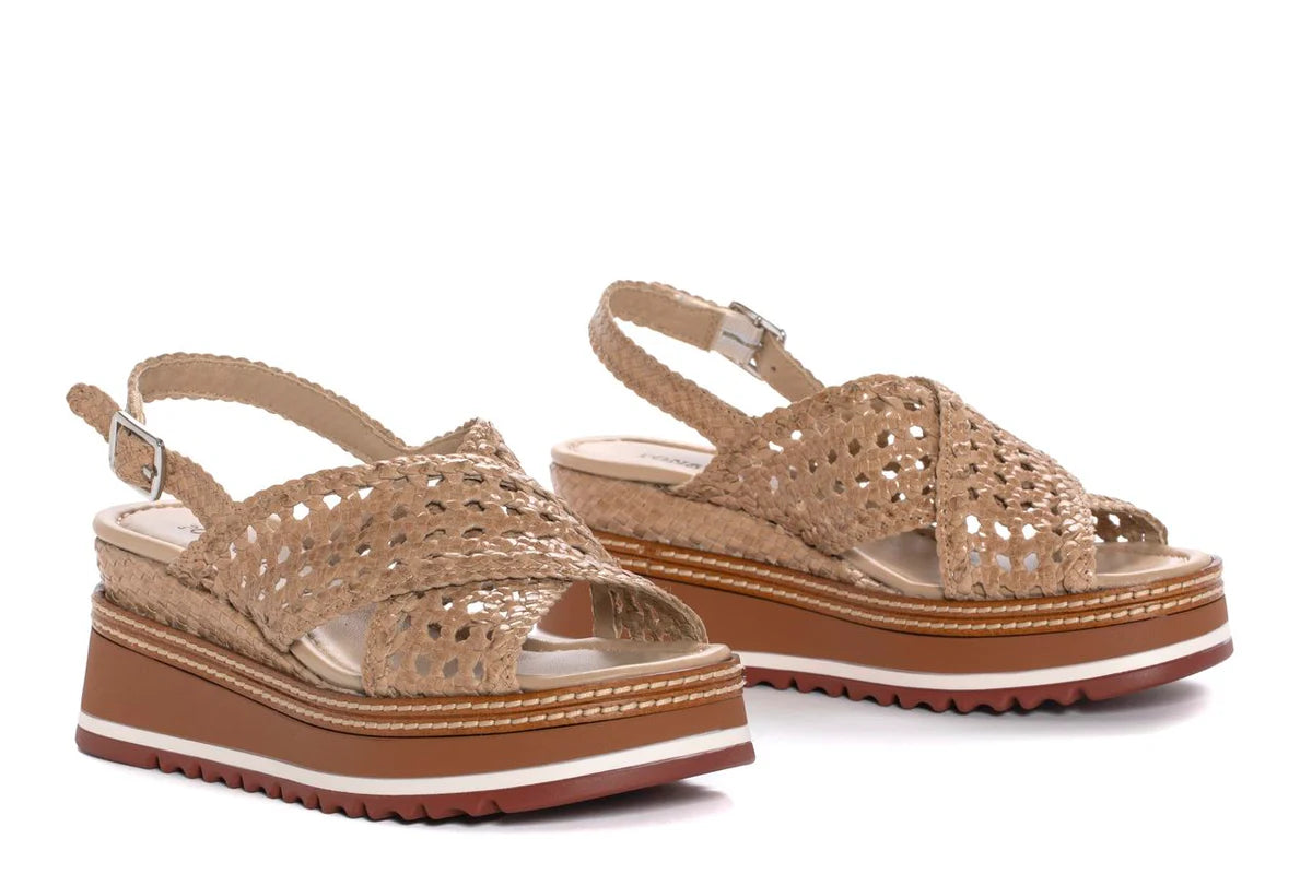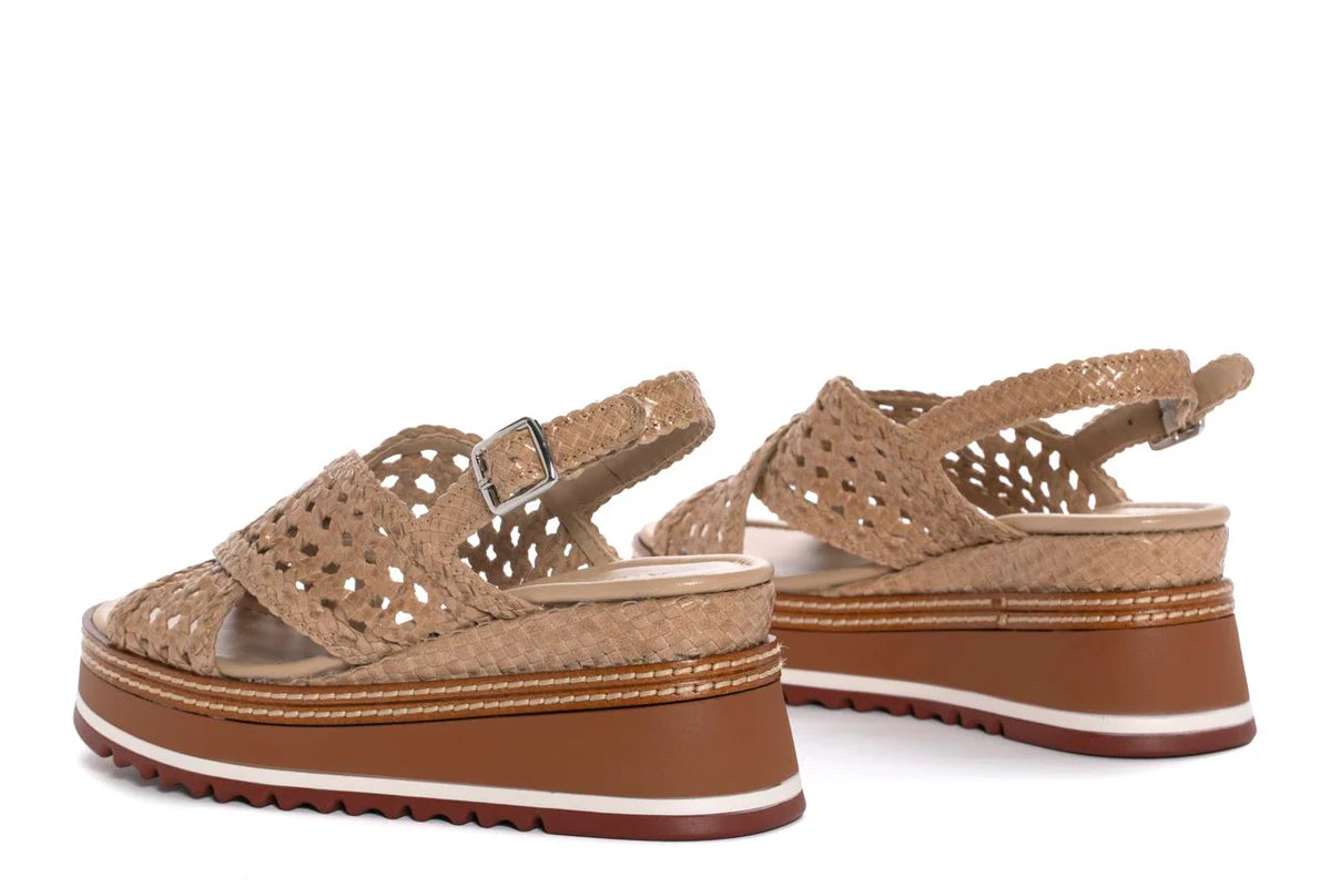 Dare to gain height without sacrificing comfort with this Inca platform sandal handmade in taupe braided leather. Its cross-blade design with openwork braided not only stands out for its unique texture, but also allows greater breathability, ideal for warm days. The buckle closure ensures a perfect fit, while its double platform creates a perfect balance between trend and functionality. An essential basic that will elevate your daily looks with naturalness and elegance. Platform height 7 cm, front height 3 cm.