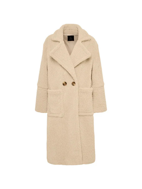 The Sand Copenhagen 'Aotea' Coat offers a refined long silhouette featuring an oversized collar that enhances both warmth and style. Its double-breasted design combines classic tailoring with a contemporary edge, while generously sized patch pockets provide practical storage without compromising the coat’s sleek appearance. This piece balances functionality and sophisticated detailing, making it a versatile addition to a polished wardrobe.