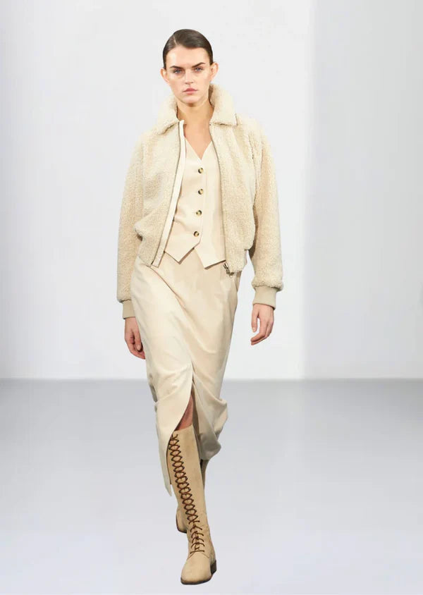 The Sand Copenhagen 'Beris' Coat combines classic design with functional details. Featuring a regular collar and raglan sleeves for enhanced mobility, it includes a full front zip closure for convenience. Ribbing on the hem and cuffs ensures a secure fit, maintaining warmth and comfort. This coat is designed with thoughtful tailoring to provide both style and practicality in everyday wear.