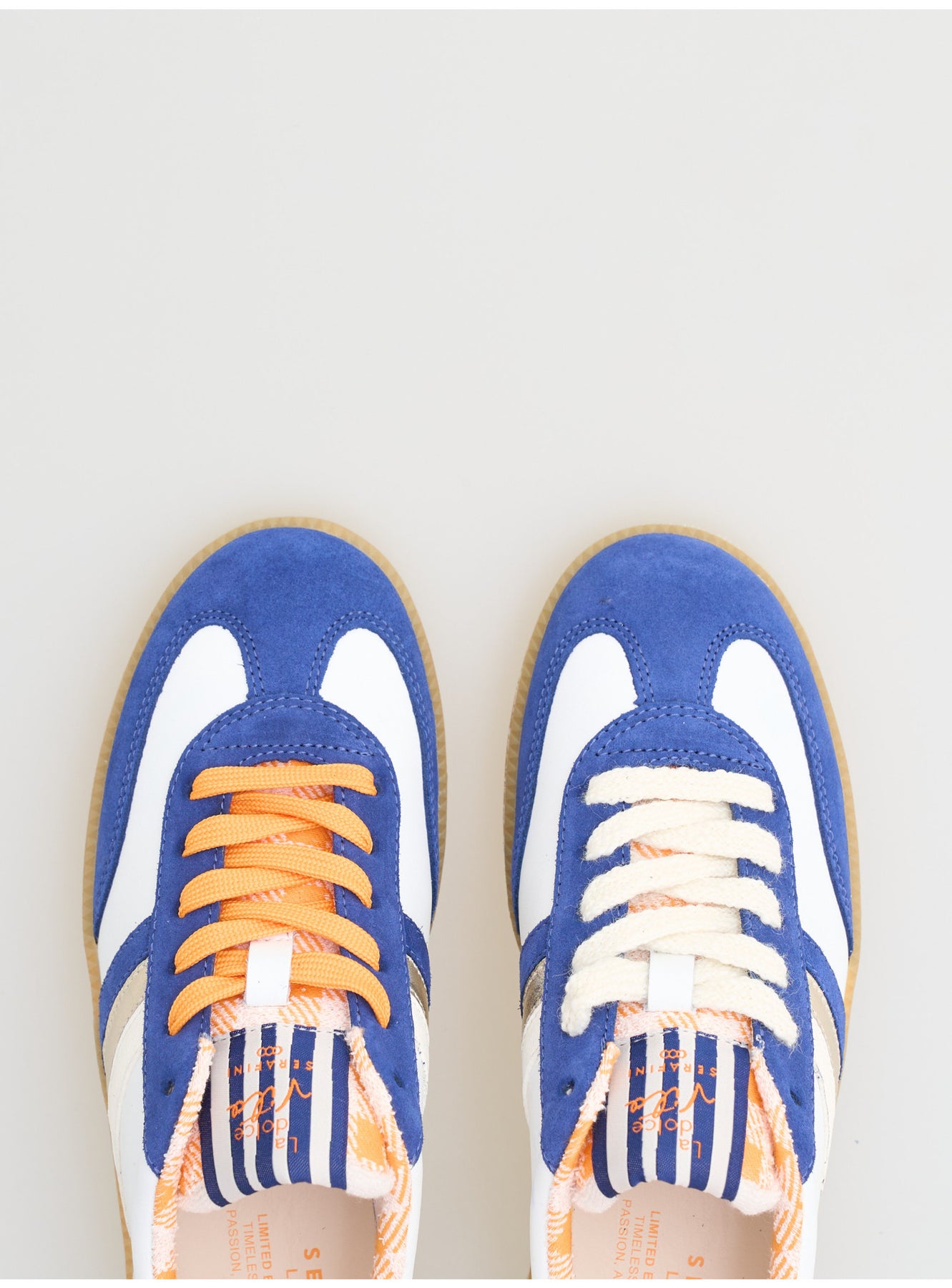 Serafini recommends not washing your shoes with water, either by hand or in the washing machine, to avoid damages.