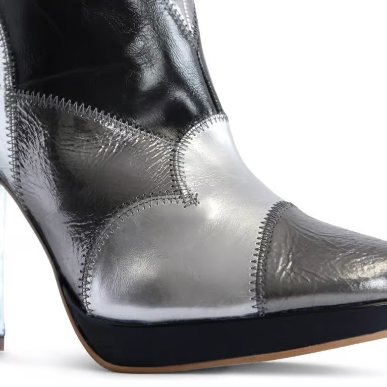 Make a statement with the Claudia Black and Silver Boot, a bold TDH ankle boot designed to turn heads. With a 10.5cm block heel and 1.5cm platform, it combines height, comfort, and signature rock ‘n’ roll attitude. The sleek black leather is elevated with striking silver detailing, making every step unforgettable. Perfect for those who dare to stand out, shine, and embrace bold luxury, the Claudia is your go-to for daring day-to-night style.